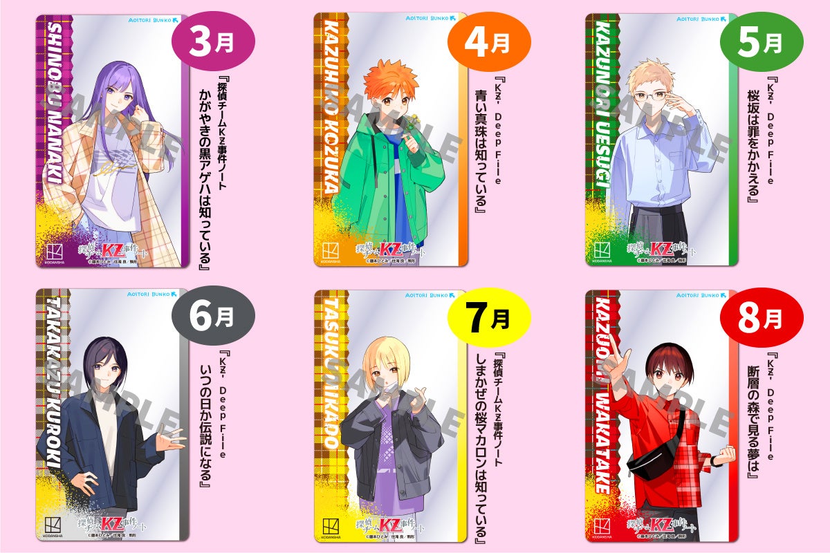 6か月連続刊行のKZとKZ’Dは特典付き! 1冊に必ず男子メンバーのキャラクリアカード1枚とKZ通信が付いてきます。さらに! 6冊すべてご購入のうえ、ご応募いただいた方全員に、立花彩のスペシャルカードをプレゼント! 目指せ、コンプリート!
