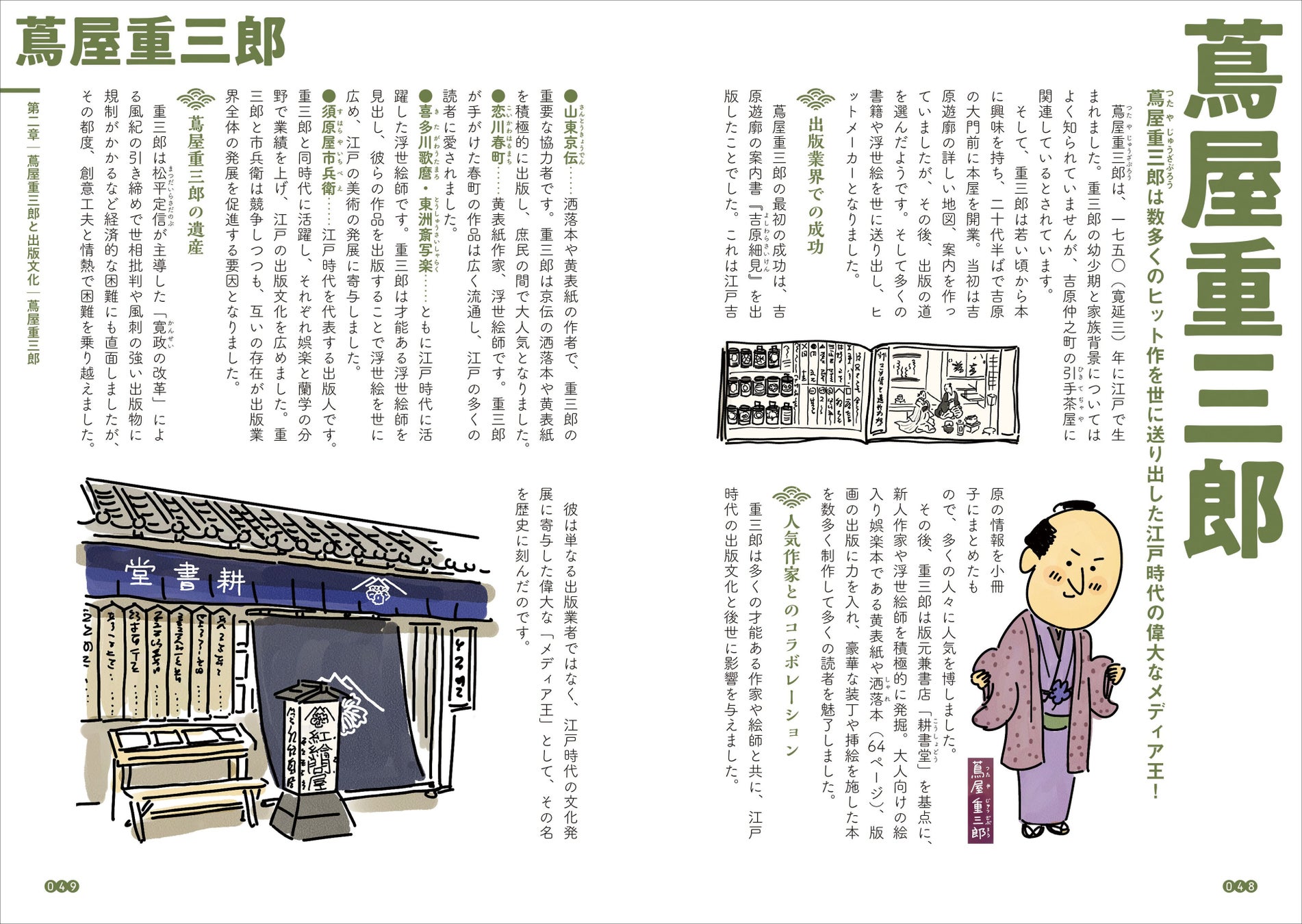 本書は、大河ドラマの主人公・蔦重こと蔦屋重三郎が暮らした江戸の町を中心に、当時の生活や娯楽、名所などを、丁寧でわかりやすい文章と趣たっぷりのマンガ・イラストで、楽しく解説。読書の習慣がない人でもスラスラ読み進められるだけでなく、百万都市・江戸のありのままの姿や魅力を、どんな本よりも活き活きとリアルにその魅力を感じとることができる、今までにない一冊です。