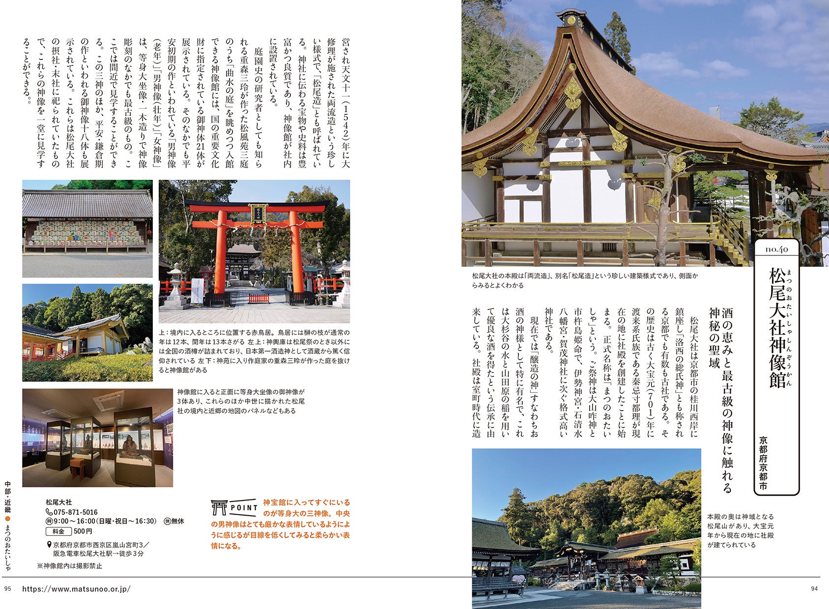 熱田神宮 宝物館・草薙館/白山神社(長瀧白山神社)/伊勢神宮 神宮徵古館/伊勢神宮 神宮農業館/式年遷宮記念 神宮美術館/油日神社・甲賀歴史民俗資料館/近江一之宮建部大社 宝物殿/北野天満宮 宝物殿/豊国神社宝物館/松尾大社神像館/譽田八幡宮