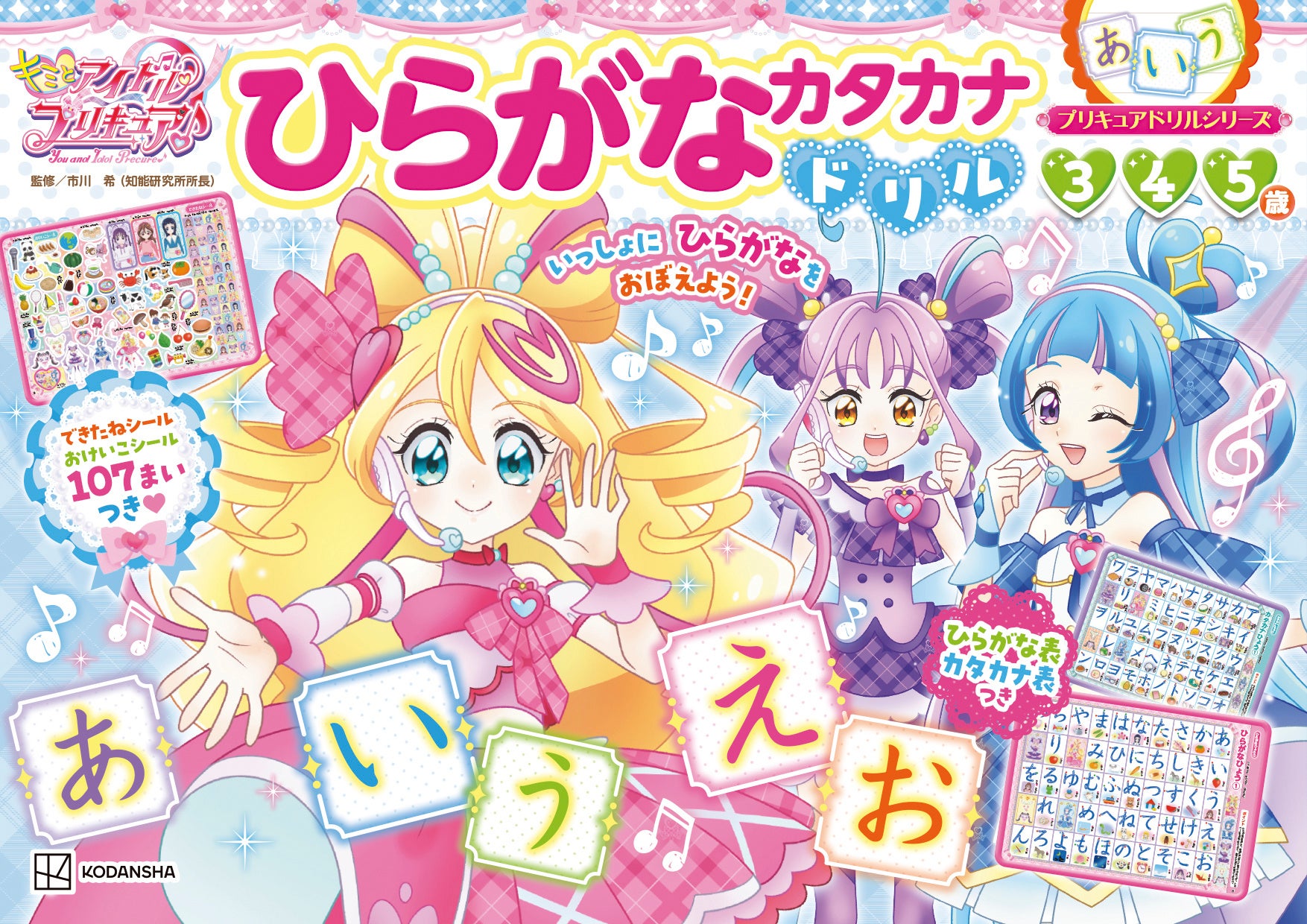 『プリキュアドリルシリーズ キミとアイドルプリキュア♪ ひらがなカタカナドリル』は、プリキュアと一緒に、たのしくひらがなカタカナを学べる1冊。