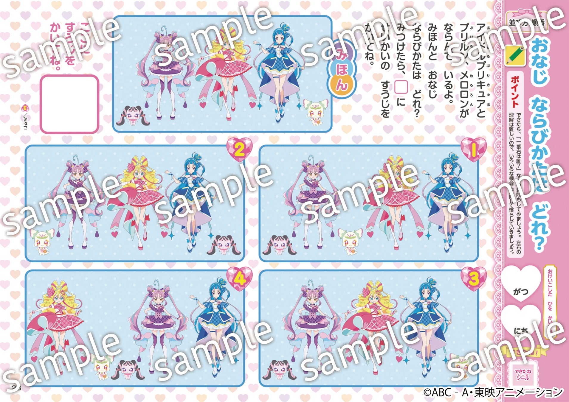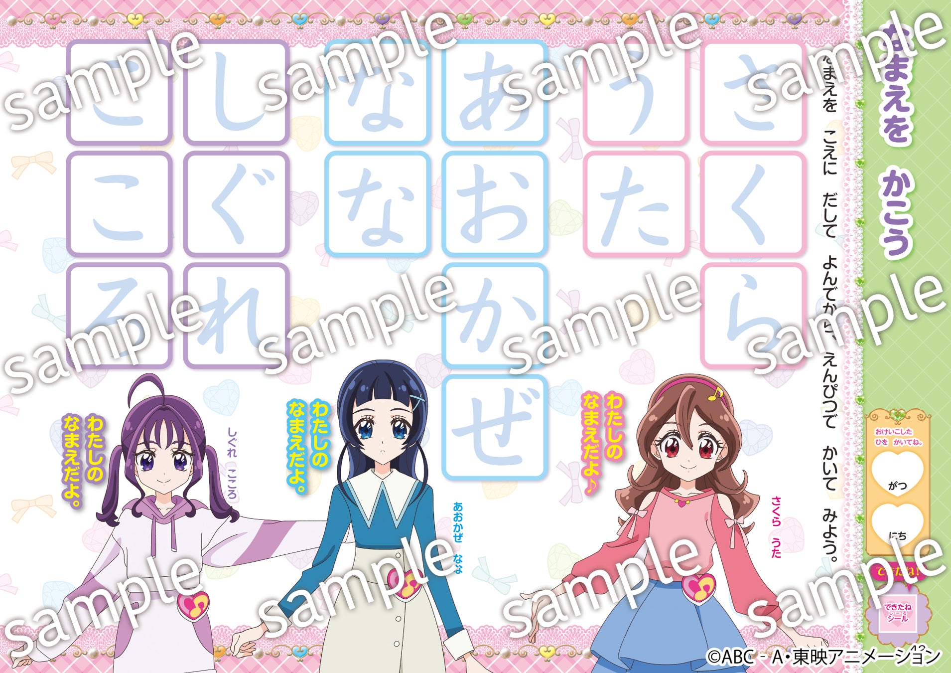 プリキュアの名前が書きたい!プリキュアを自分で読みたい!という気持ちを後押しする作りで、自然と文字に親しんでいけます。