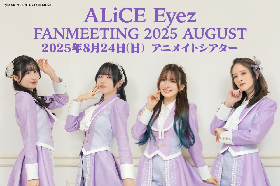 2025年8月24日に女性声優ユニット・ALiCE Eyez(メンバー:涼本あきほさん、風間万裕子さん、紫月杏朱彩さん、田中那実さん)がファンミーティングをアニメイトシアターで開催! 現在、参加チケットを販売中で、有料生配信も実施致します。ファンの皆さんの瞳の中で輝いていけるように成長を目指して活動中の4人のパフォーマンスに是非ご注目下さい。