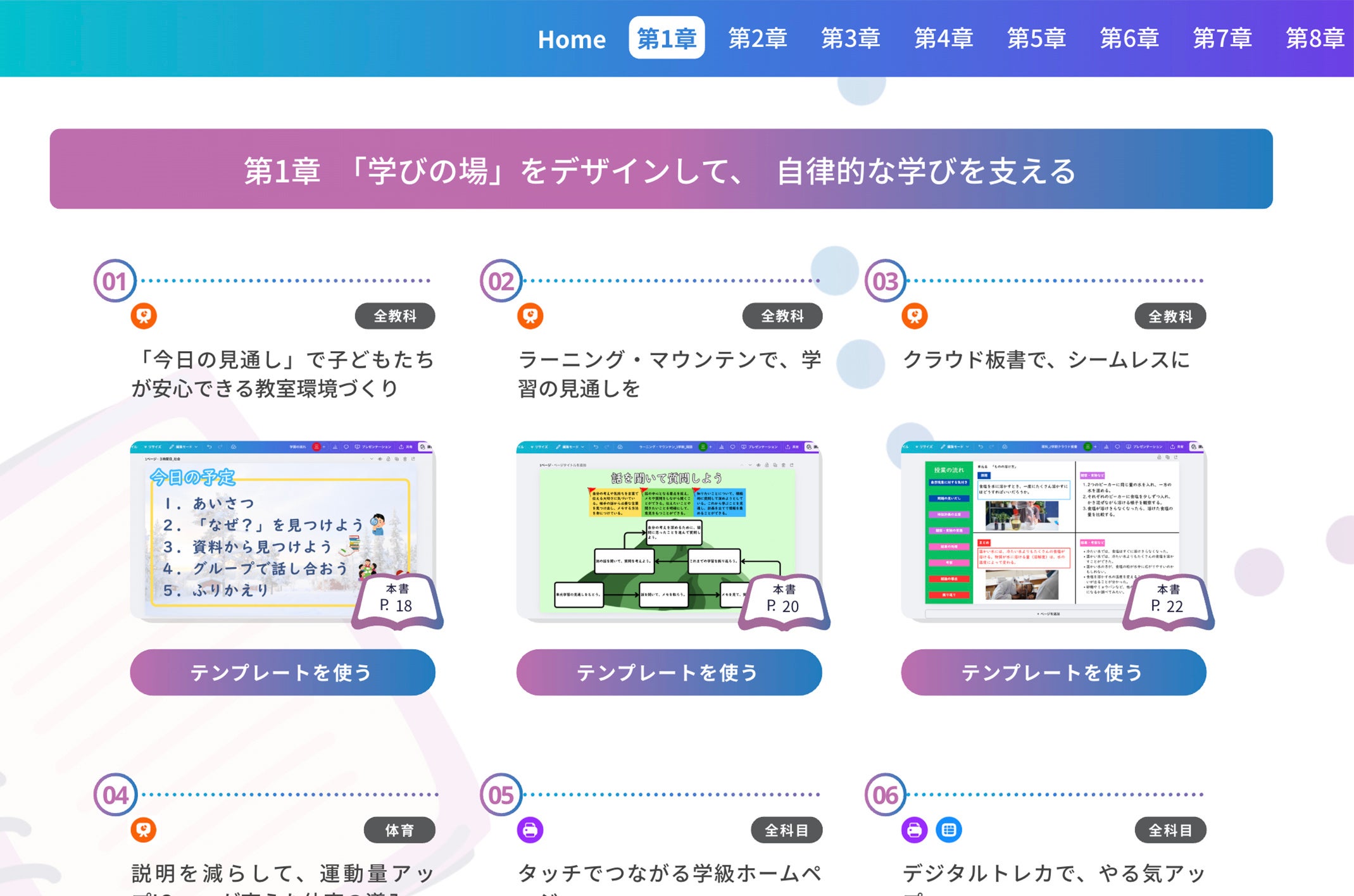 各事例は要点を簡潔に紹介し、付属するテンプレートは各事例ページに配置したQRコードからすぐに利用可能です。デジタル板書や生徒の協働制作など、幅広い授業・活動に応用でき、ICTツールに不慣れな先生でも迷わずノウハウを取り入れられる紙面になっています。本書を活用することで、教材の見た目をデザインするといったことに時間を取られていた先生たちが、簡単によりよいデザインにできるのはもちろん、何を伝えたいかに時間を活用できるようになるきっかけとなる一冊です。