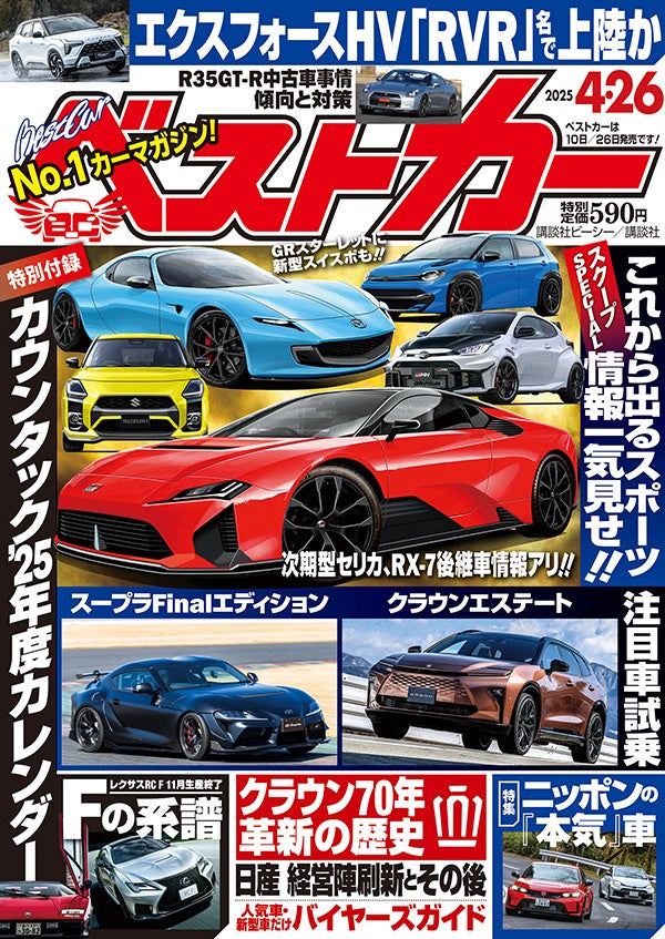 ベストカー4/26号は特別定価590円。全国の書店・コンビニ、ネット通販各サイトにて発売中だ。