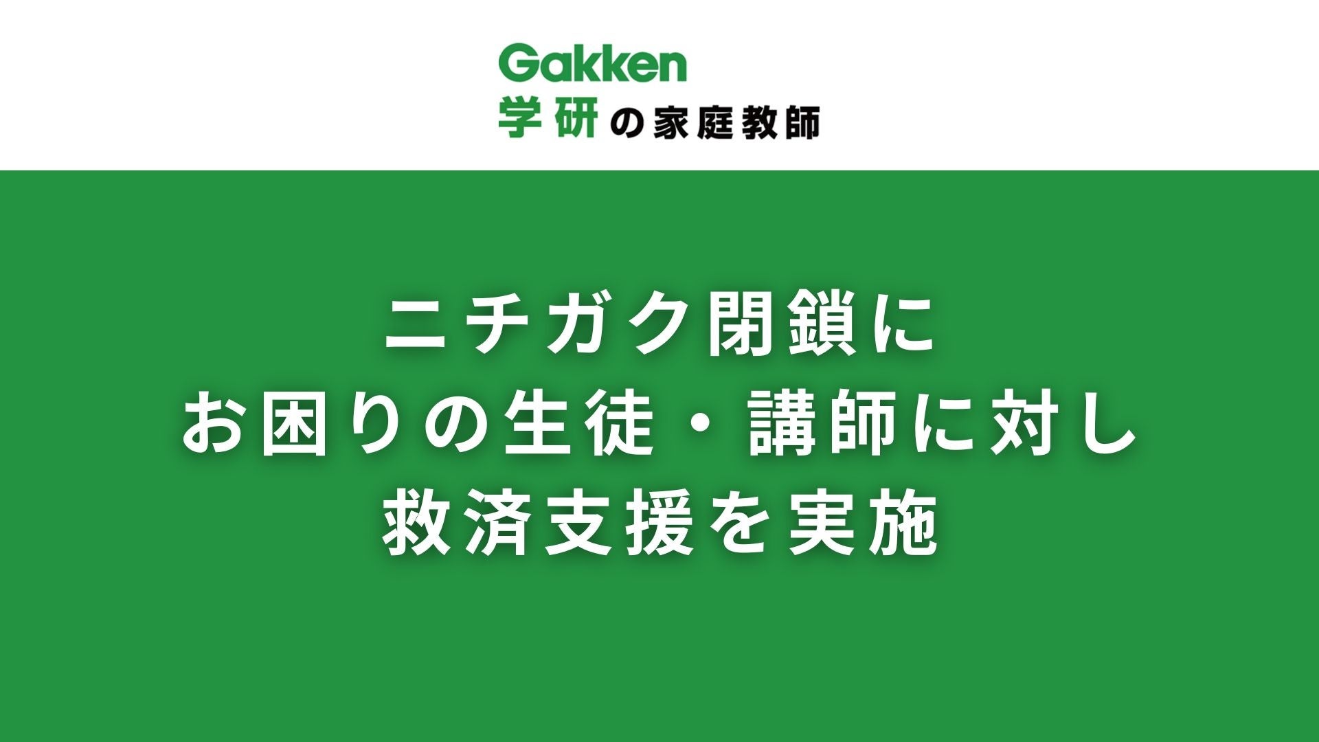 『学研の家庭教師』 ニチガク閉鎖にお困りの生徒・講師に対し救済支援を実施