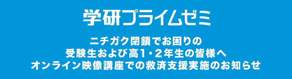 「学研プライムゼミ」から、ニチガク閉鎖でお困りの受験生および高1・2年生へのオンライン映像講座での救済支援実施のお知らせ