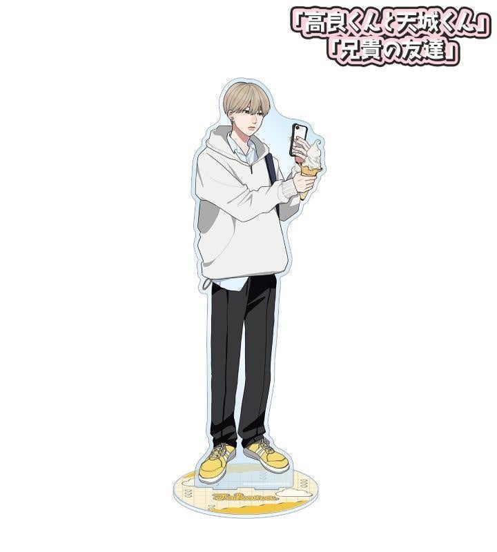 「高良くんと天城くん」4巻、5巻の表紙イラスト、「兄貴の友達 」3巻の表紙イラスト、「兄貴の友達 僕らのおうち」表紙イラストをパーツ付きのBIGなアクリルスタンドに仕上げました。