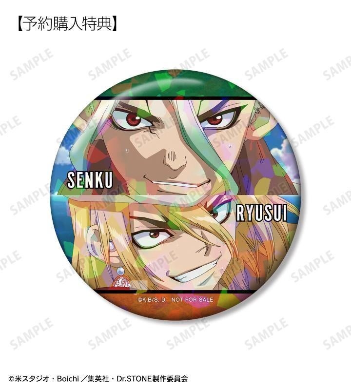 当商品を1BOX、または単品にて1BOX相当数ご注文ごとに、予約購入特典として「石神千空&七海龍水 ホログラム場面写76mm缶バッジ AMNIBUS限定特典」を付属いたします。