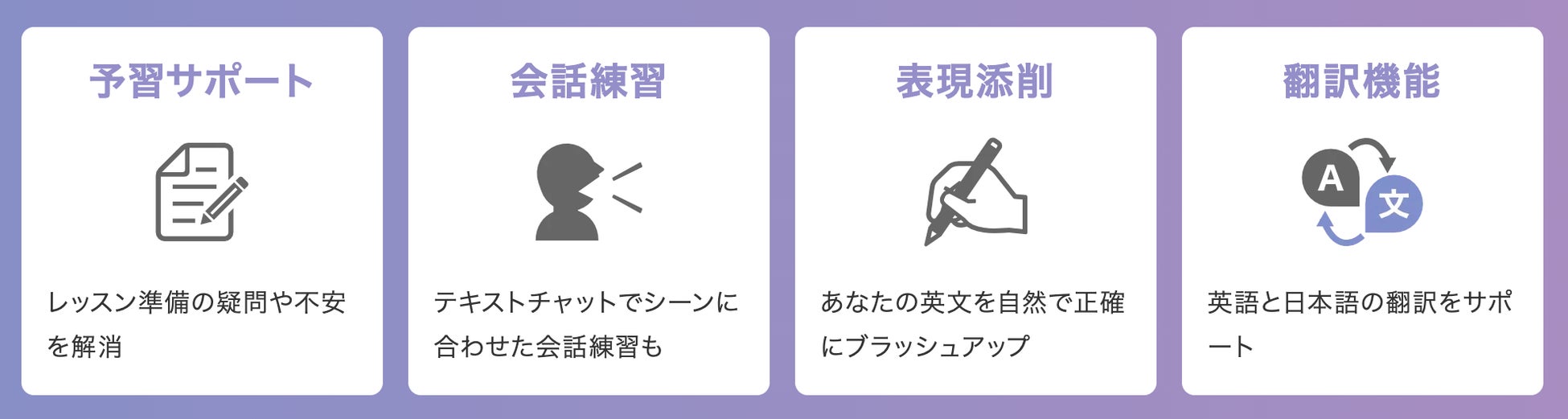 株式会社 学研ホールディングス(東京・品川/代表取締役社長:宮原博昭)のグループ会社で、オンライン英会話サービス「Kimini英会話」を提供している株式会社 Glats(東京・品川/代表取締役社長:杉原聡)は、2025年1月8日(水)にレッスンの予習サポートや、英会話練習、表現添削、翻訳などを行える英語学習サポート特化型AIチャットボット「KiminiAI β」をリリースいたしました。