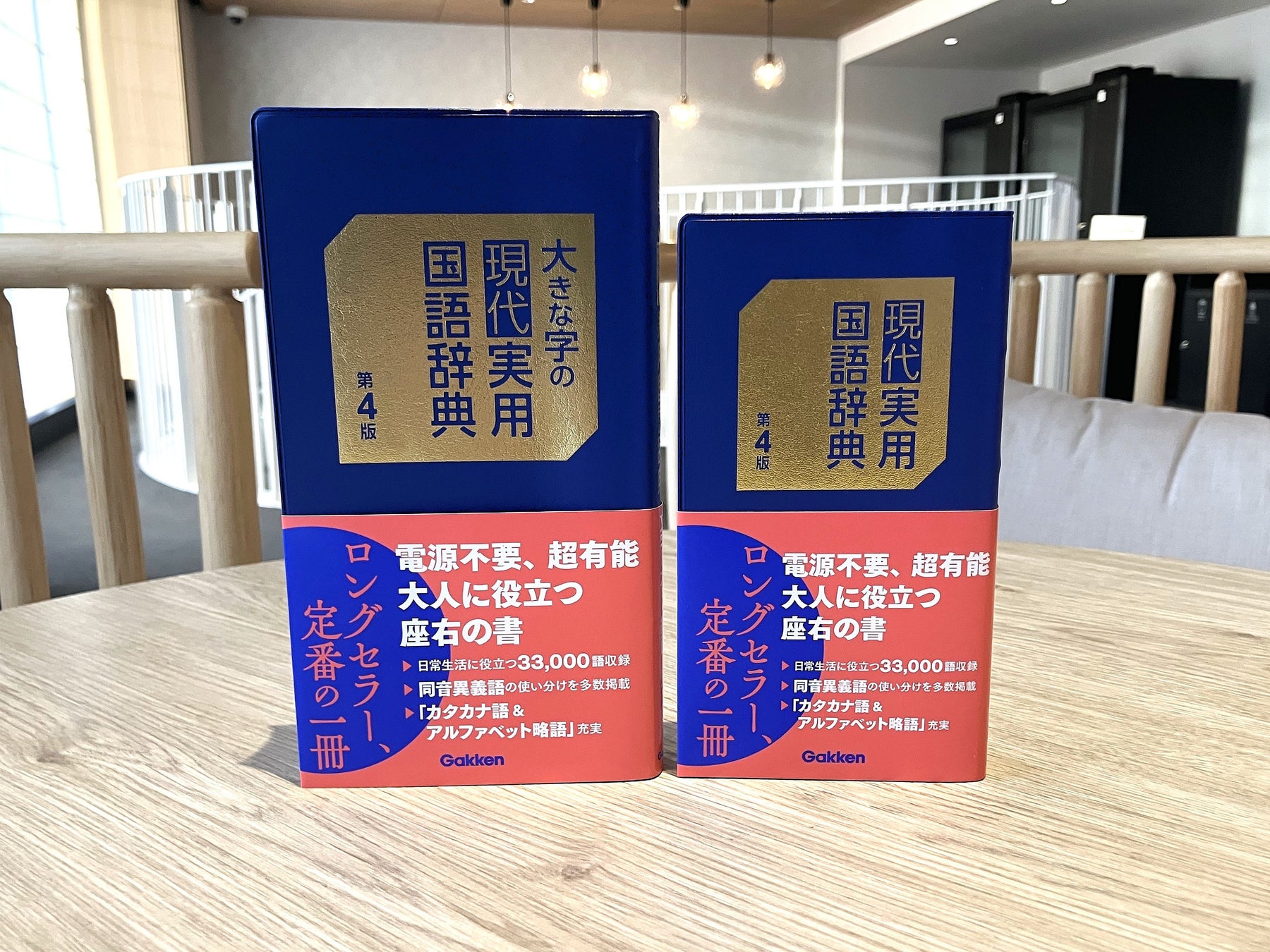 よりコンパクトで持ち歩きに便利な『現代実用国語辞典 第4版』と、見出しの文字が大きく見やすい『大きな字の現代実用国語辞典 第4版』がございます。