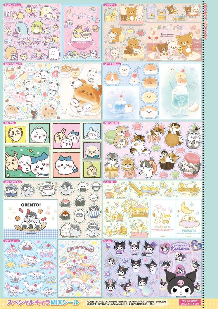 今号のスペシャルキャラMIXシールは、「すみっコぐらし」「リラックマ」「もちもちぱんだ」「いーすとけん。」「ちいかわ」「mofusand」「コウペンちゃん」「スヌーピー」「シナモロール」「クロミ」の全10キャラクター! 自分のお気に入りのものに貼って、楽しんでください♪