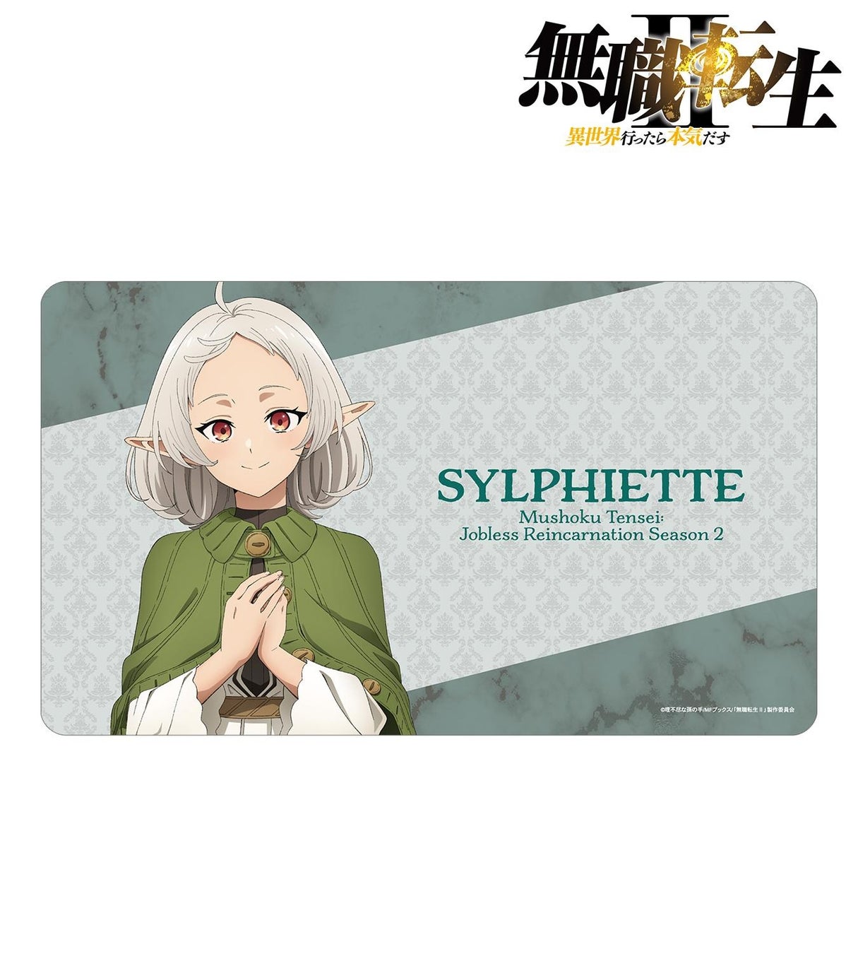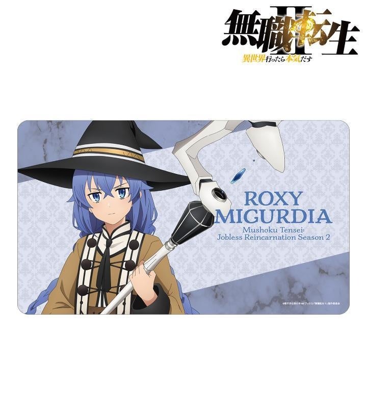 ロキシー・ミグルディア、シルフィエットのイラスト、キャラクターの名前、作品名をマルチデスクマットに仕上げました。