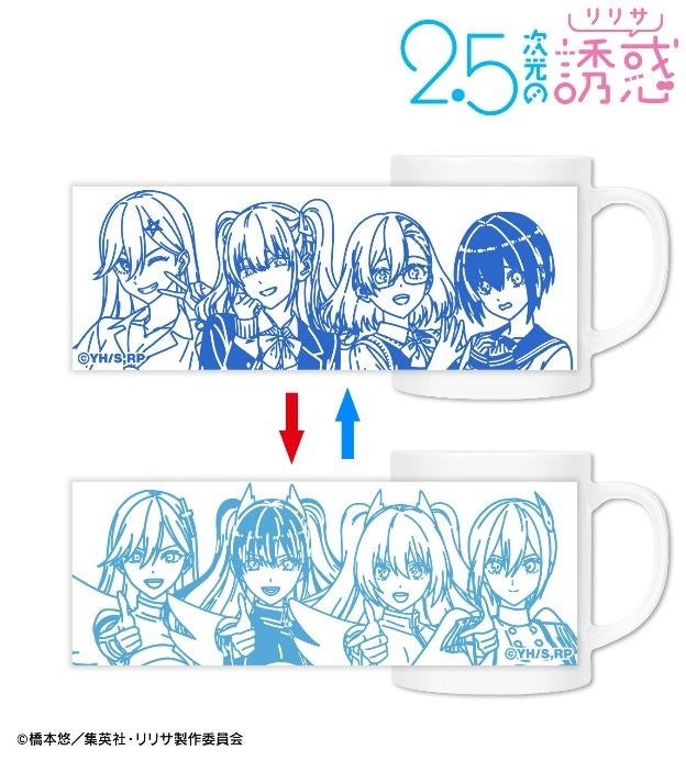 温度に反応する特殊なインクを使用しており、マグカップに温かい飲み物を入れると、天乃リリサ、橘美花莉、ノノア、喜咲アリア、リリエル 天使空挺隊、ミリエラ 天使空挺隊、ノキエル 天使空挺隊、アリエル 天使空挺隊のイラスト、セリフ絵柄が変化します。