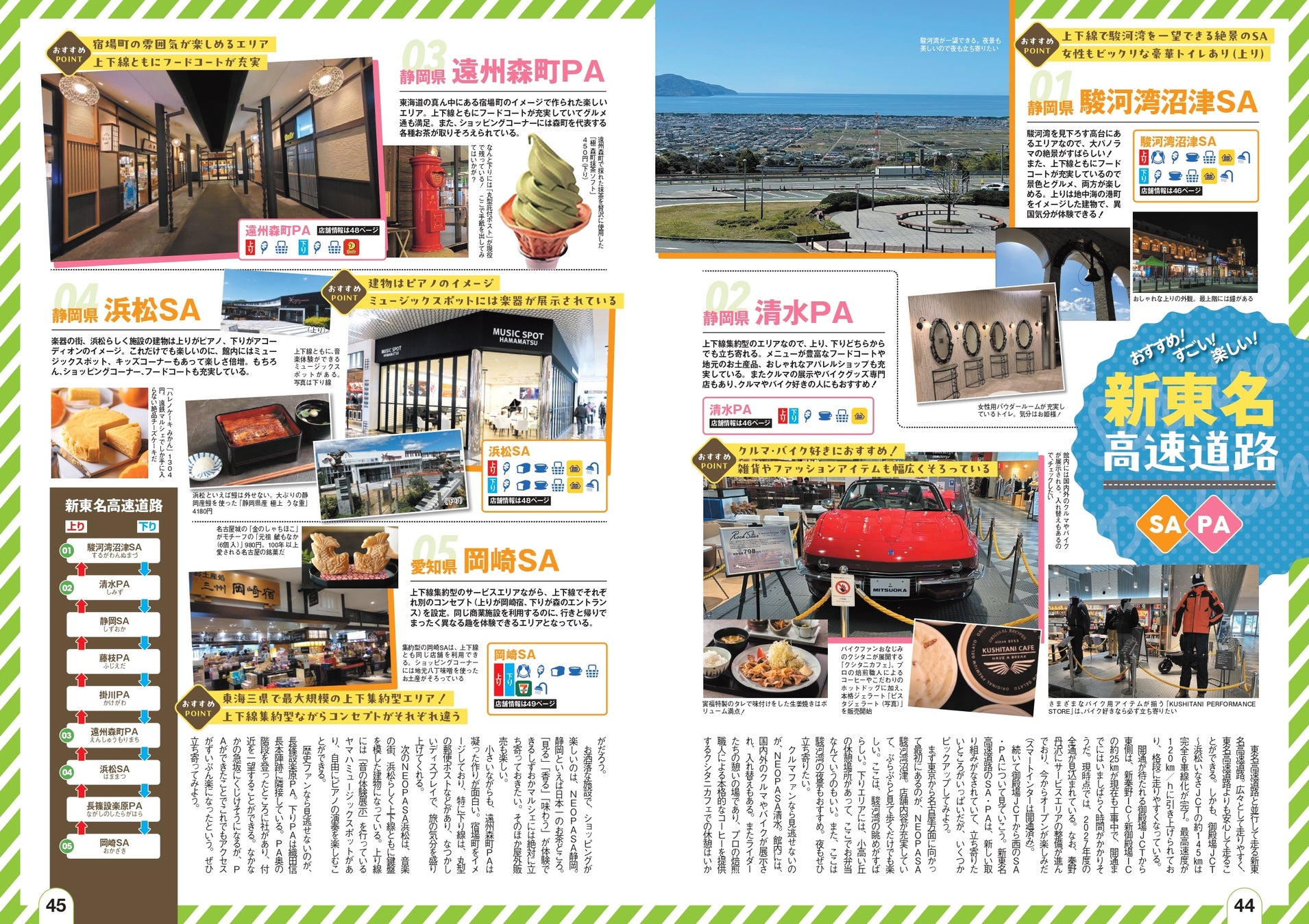 今年度版では、レイアウトを見直し、さらに閲覧性がアップ。特集ページでは新たに高速道路から道の駅に一時退出しても追加料金のない全国28カ所の道の駅を紹介。各SA・PAの写真サイズも大きくなって、各エリアの魅力がより伝わりやすくなっているぞ。