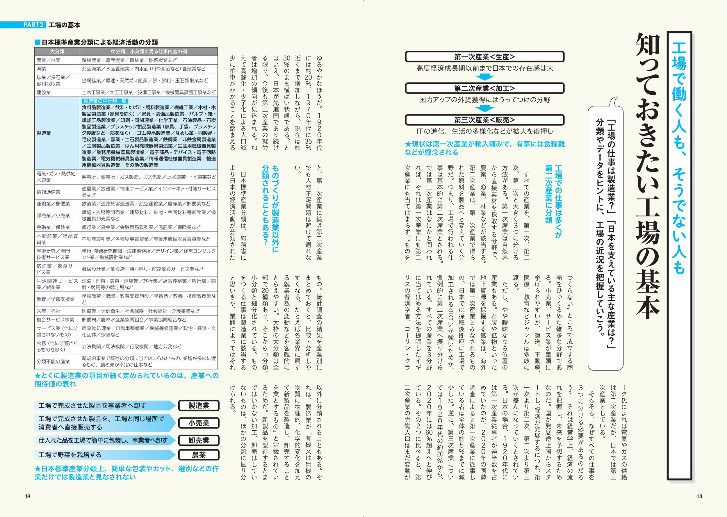 これから工場で働いてみたい人や、見学や取材で工場を訪れる人にとっても、基本を押さえるための入門書として構成しています。ページを追いながら、自分の身のまわりにある工場を思い浮かべて読んでいただければ幸いです。