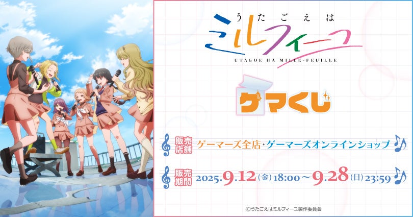 株式会社カードラボ ゲーマーズ(本社:東京都豊島区、https://www.gamers.co.jp/ 以下ゲーマーズ)は、ハズレなしのオンラインくじサービス「ゲマくじ」にて、2025年9月12日(金) 18:00よりTVアニメ『うたごえはミルフィーユ』を販売することをお知らせいたします。