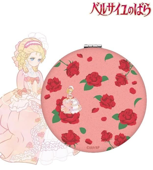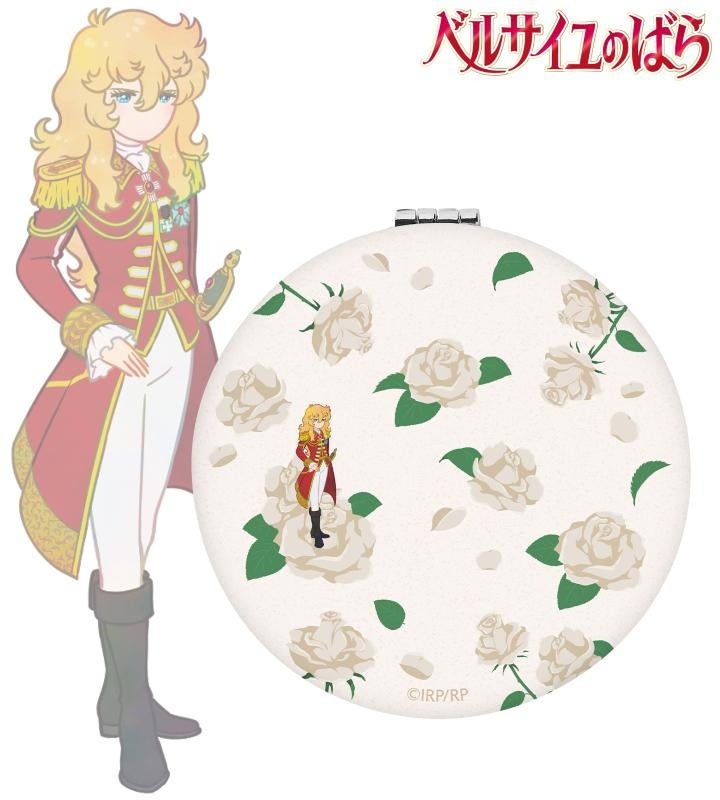 オスカル、マリー・アントワネットのイラストをボタニカルデザインに落とし込んで繊細なタッチで新たに描き起こし、折りたたみミラーに仕上げました。