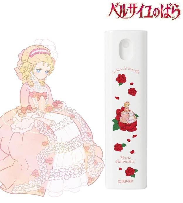 オスカル、マリー・アントワネットのイラストをボタニカルデザインに落とし込んで繊細なタッチで新たに描き起こし、ケース付きのスプレーボトルに仕上げました。