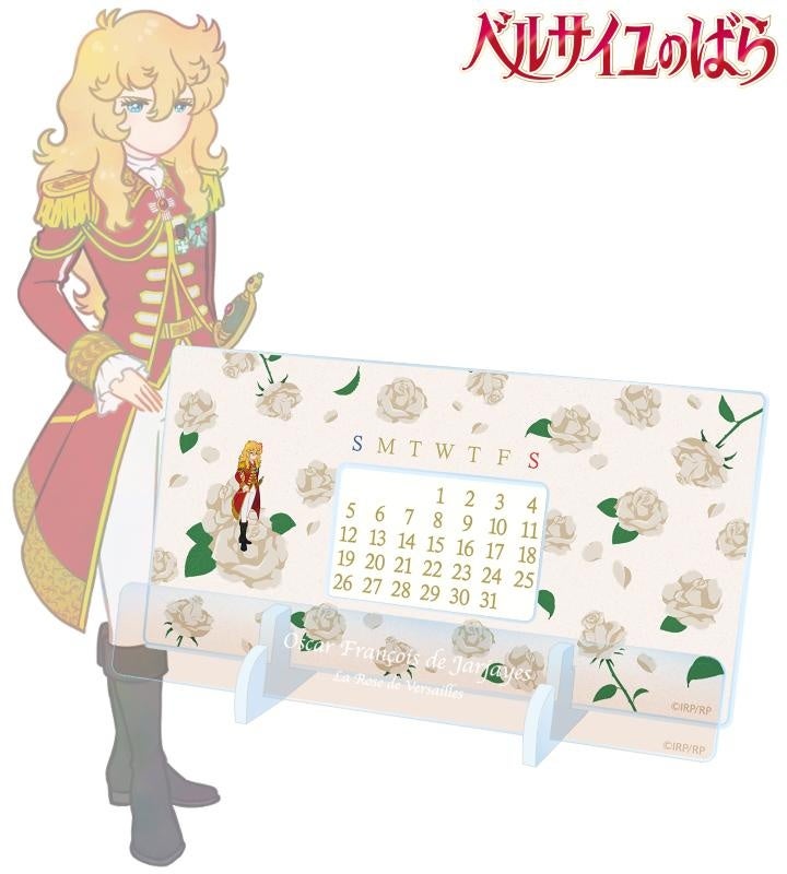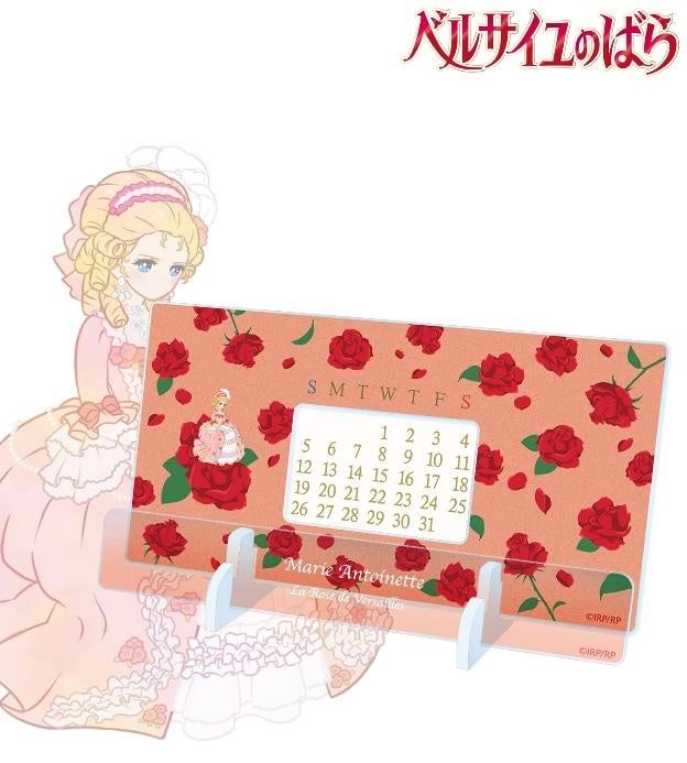 オスカル、マリー・アントワネットのイラストをボタニカルデザインに落とし込んで繊細なタッチで新たに描き起こし、卓上アクリル万年カレンダーに仕上げました。