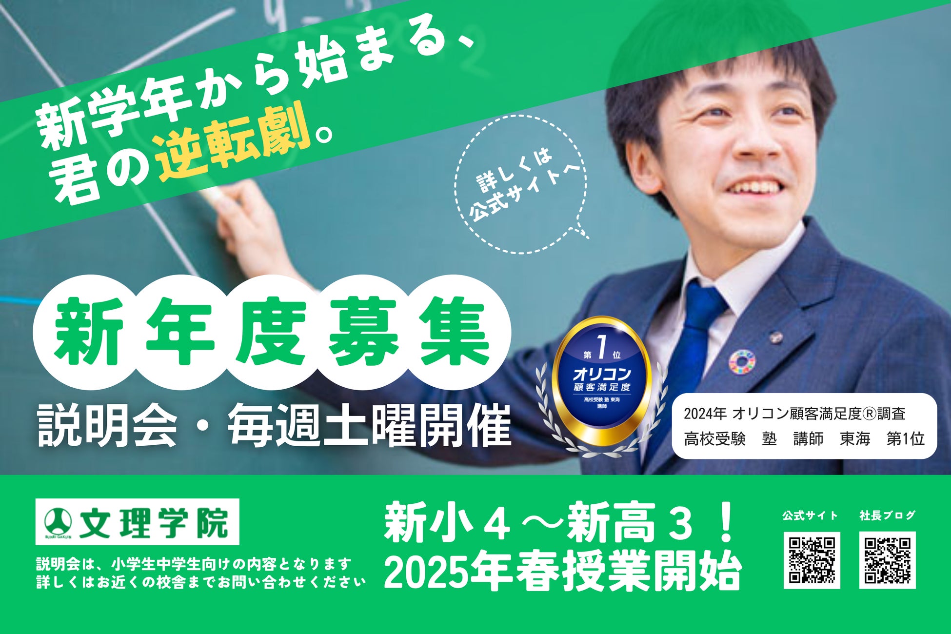 【2024年 オリコン顧客満足度Ⓡ調査 講師 №1】文理学院は新年度生を募集しています。2025年春から小学生と中学1年生の授業が変わります! さらに、新しい校舎もオープンします。