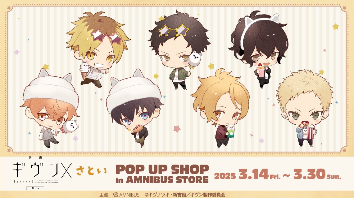 2025年3月14日(金)より「AMNIBUS STORE」にて「『映画 ギヴン 海へ×さとい』 POP UP SHOP in AMNIBUS STORE」の開催が決定いたしました。