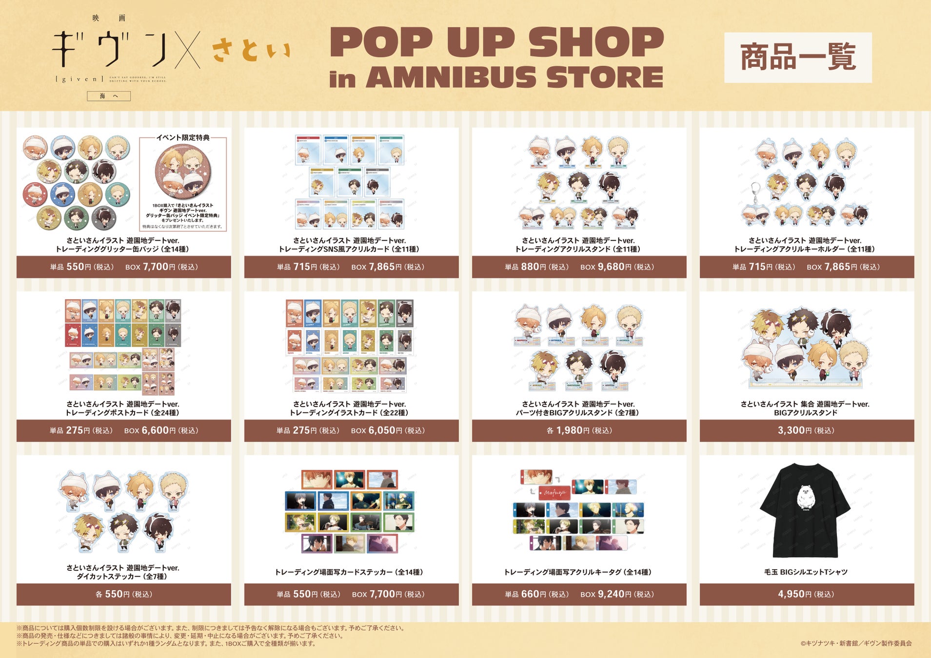 「『映画 ギヴン 海へ×さとい』 POP UP SHOP in AMNIBUS STORE」