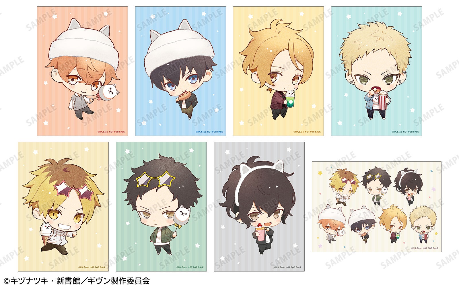 今回のイベントでは、『映画 ギヴン 海へ』より「さとい」さんによる「遊園地デート」をコンセプトにした新規描き下ろしデフォルメイラストを使用したグッズを多数先行販売する他、AMNIBUS STORE購入特典の配布を予定しております。