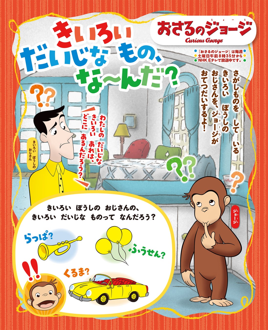 きいろいぼうしのおじさんの大事な“きいろいもの”をジョージが探すよ。