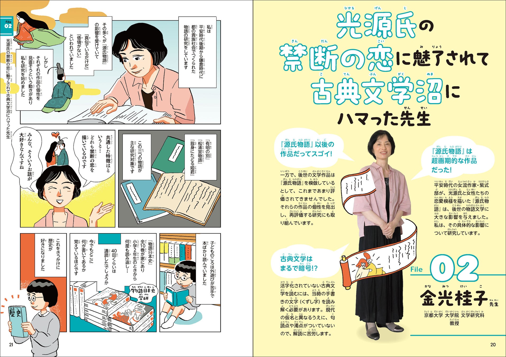 ジブリ映画をきっかけに航空工学にあこがれた先生、光源氏の禁断の恋に魅了されて古典文学の研究をはじめた先生など、東京大学・京都大学の12名の先生たちの研究のルーツをマンガで紹介。身近な「なぜ」がどう研究につながるのかがわかります。