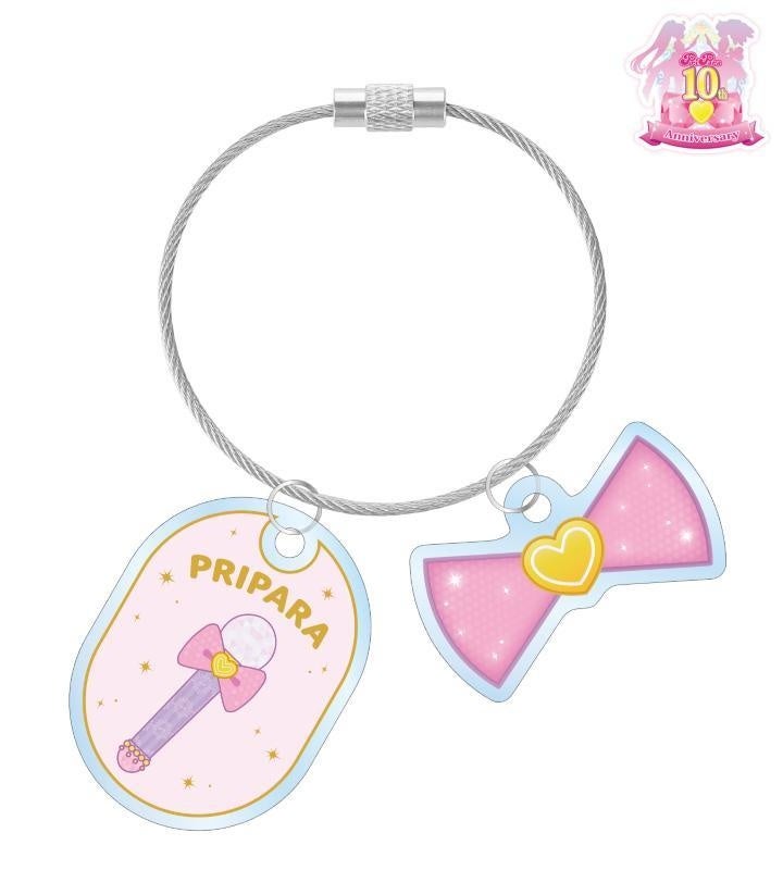 作品ロゴのリボン、真中らぁらのマイクの描き起こしモチーフイラストを2連ワイヤーアクリルキーホルダーに仕上げました。
