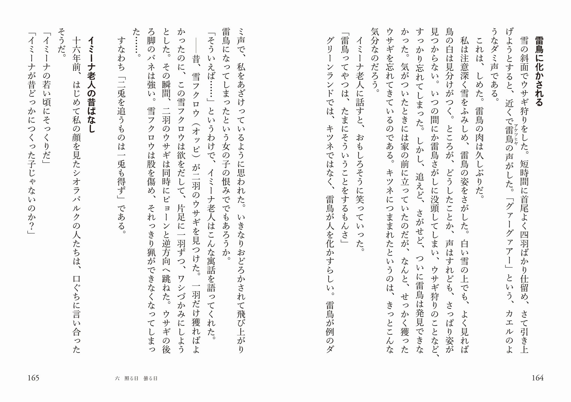 雷鳥に化かされる/イミーナ老人の昔ばなし/怪談・伝承/犬と結婚した娘の話/金星の伝説/方向をさがす方法/極北で生きる知恵/猟のライセンスは三種類/自然を相手に