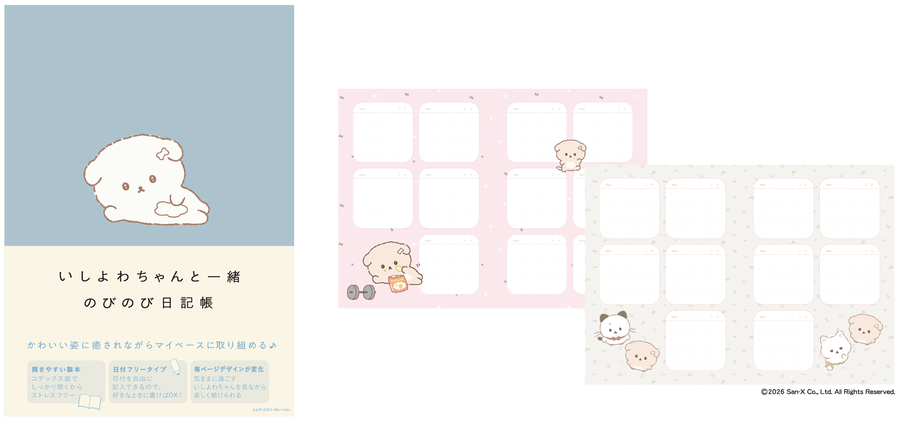 インプレスグループでデザイン分野のメディア事業を手がける株式会社エムディエヌコーポレーション(本社:東京都千代田区、代表取締役社長:小川亨、略称:MdN)は、サンエックスの人気キャラクターのゆるくてかわいいイラストがたくさん載っている『コリラックマと一緒 のびのび日記帳』『リラックマと一緒 のびのび日記帳』『いしよわちゃんと一緒 のびのび日記帳』の3冊を2026年3月31日に発売します。