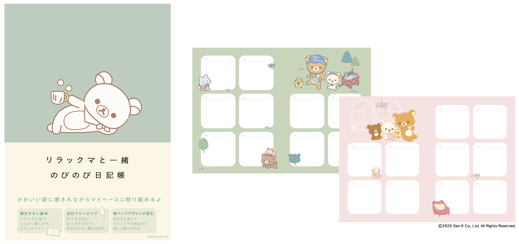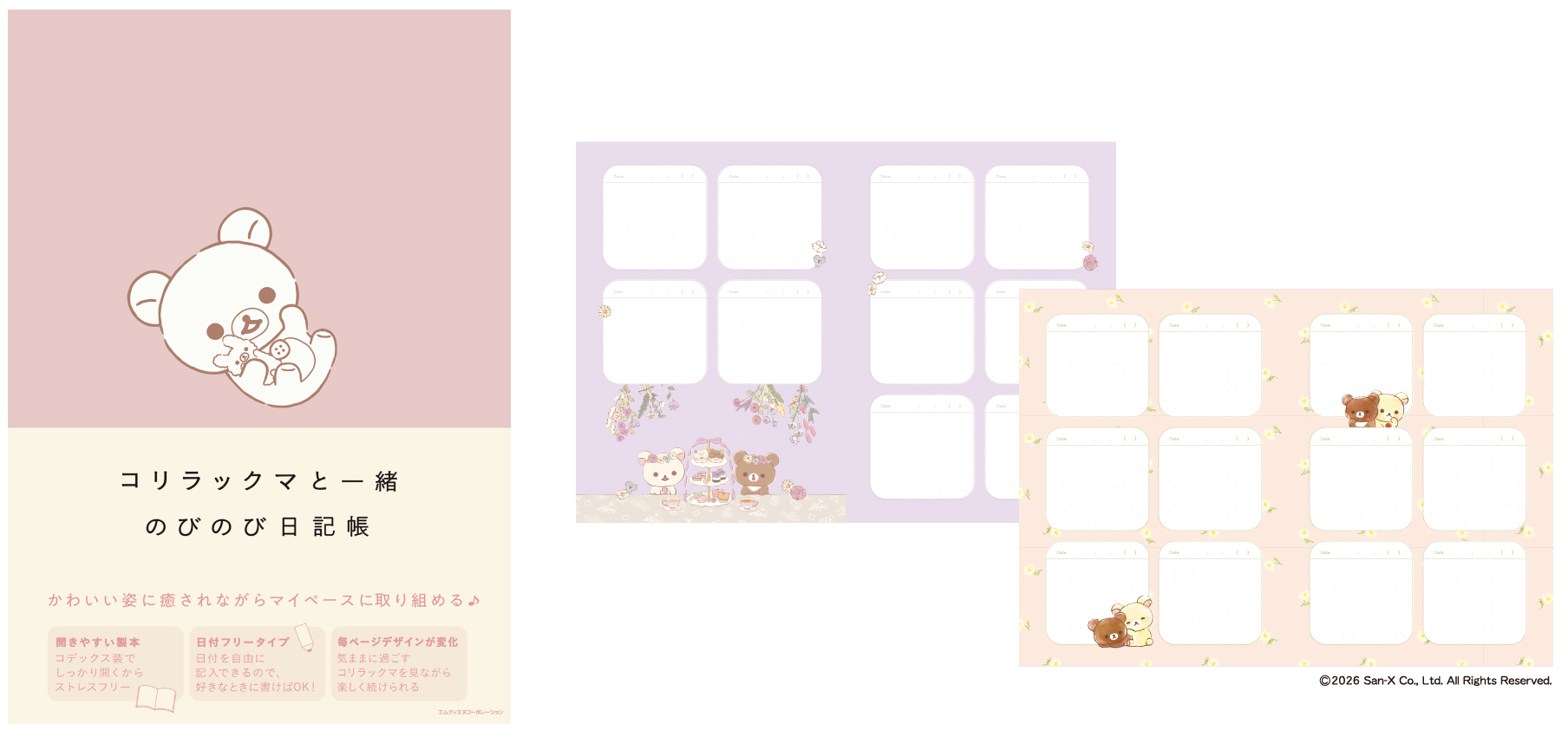 大人かわいい素敵な日記帳が登場! リラックマ・コリラックマ・いしよわちゃんの『のびのび日記帳』が2026年3月31日に3冊同時発売! ☆予約受付中☆