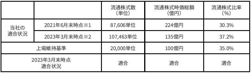 ※2.東証より受領した「上場維持基準(分布基準)への適合状況について」をもとに記載を行なったものです。