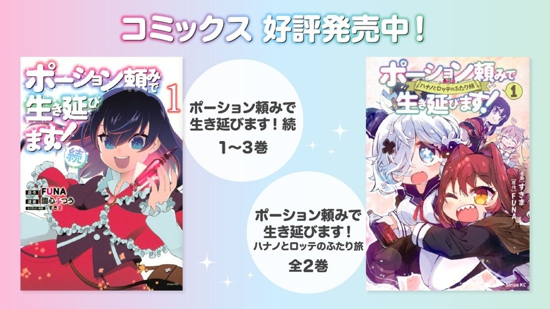 原作小説1~11巻、 コミカライズ『ポーション頼みで生き延びます!』全9巻も大好評発売中!こちらもご注目ください。