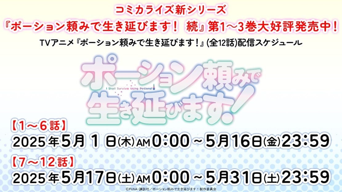 TVアニメ『ポーション頼みで生き延びます!』(全12話)配信スケジュール