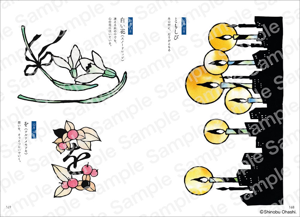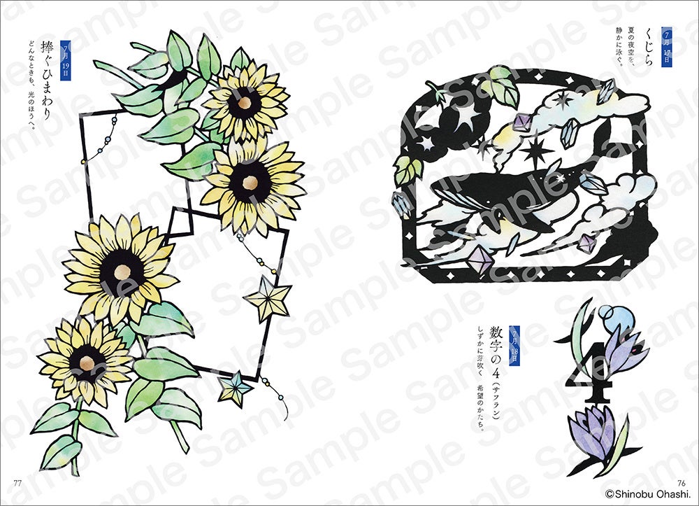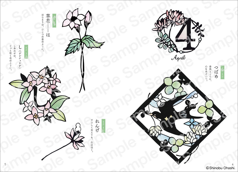 また、本書の魅力をさらに広げるものとして、「ひらがな」「数字」などの文字図案も収録。カード作りやインテリア、季節の飾りなど、さまざまなアレンジが可能です。それに加え、1月1日から12月31日まで“1日1切り絵”を楽しめる構成で、季節の移ろいとともに図案に触れる豊かな時間をお届けします。