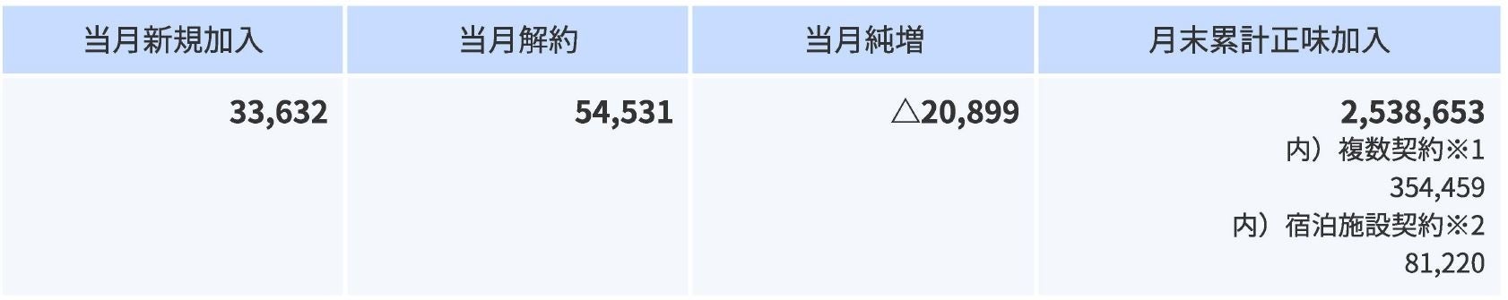 ※2:宿泊施設の客室で視聴するための宿泊施設事業者との契約については、視聴料金を個別に定めており、当該宿泊施設における契約客室の累計正味加入件(室)数は、月末累計正味加入件数に含めております。