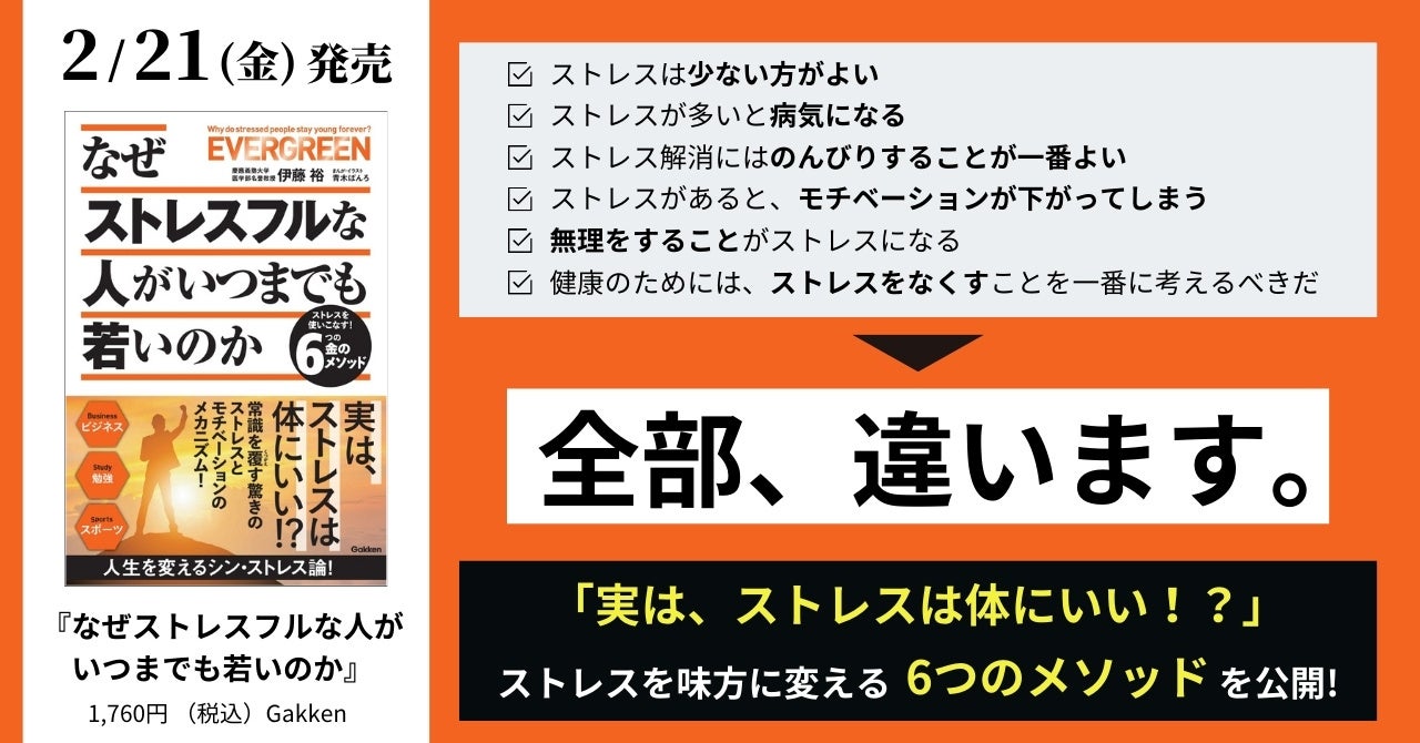株式会社 学研ホールディングス(東京・品川/代表取締役社長:宮原博昭)のグループ会社、株式会社 Gakken(東京・品川/代表取締役社長:南條達也)は、2025年2月21日(金)に、『なぜストレスフルな人がいつまでも若いのか』(著:伊藤裕)を発売いたしました。