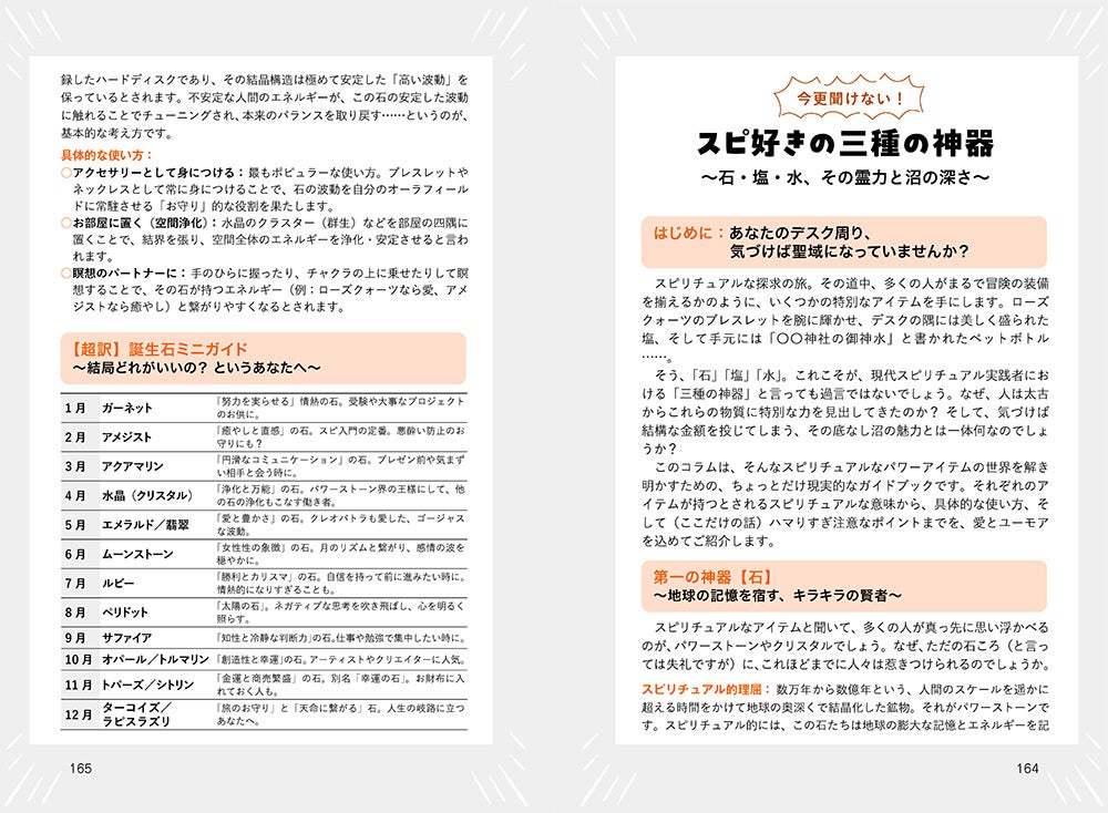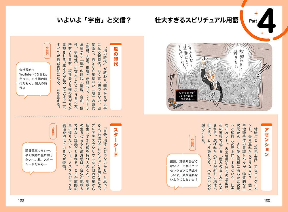 独特な言い回しで、明確な説明や翻訳がなくて、なのに知らないと進んでいけない言葉がたくさんあるのがスピの世界。「ハイヤーセルフ」「波動」「アセンション」「チャネリング」「神話」「日本の神様の名前」――聞いたことはあるけど、ちゃんと分からない。そんなあなたにスピ用語を笑って学べる図鑑が登場。ゆるいイラストとツッコミ満載の短文解説でユーモラスに紹介します。信じる・信じないに関係なく「なんか面白い」「ちょっとわかる気がする」と思える内容で、初心者から玄人(!?)まで楽しめる一冊です。