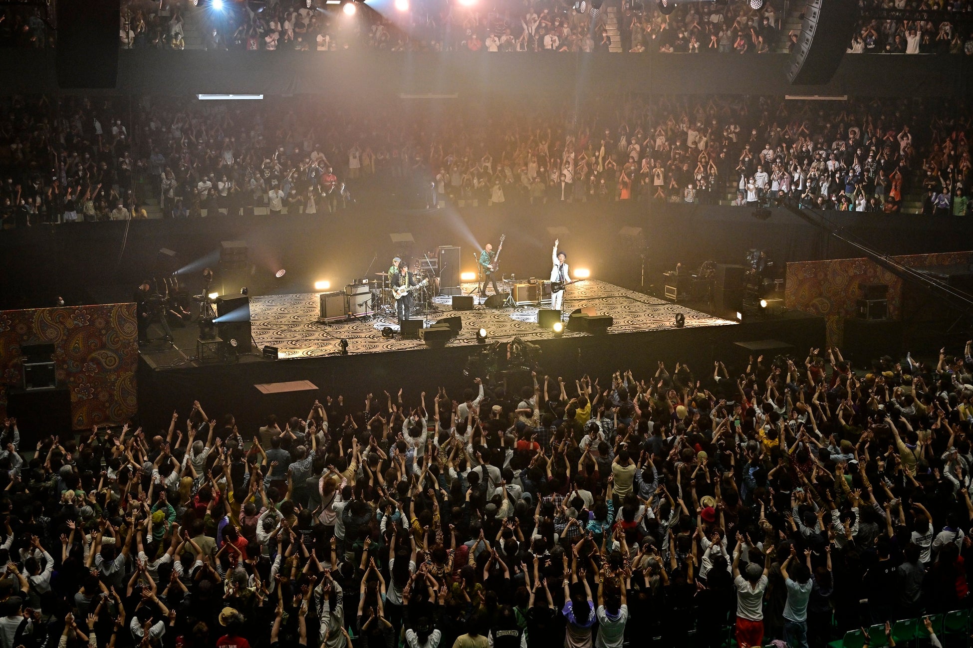 アリーナ席、そしてステージを360度取り囲む1F・2Fスタンド席まで、立錐の余地の無い満場の大観衆。その数、実に1万4千人。爆発するかのような張り詰めた空気が開演前から渦巻いていた。