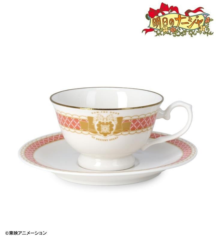 ソーサーはナージャの傘をイメージしてカップ同様の柄を入れ、対角線上に傘の持ち手に入っている模様とリボンを入れたデザインとなっております。