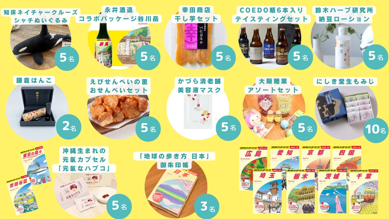 地球の歩き方国内版の累計発行部数100万部突破を記念して、2025年2月5日(水)~2月28日(金)まで、抽選で200名様に日本全国、各地の名産品をプレゼントするキャンペーンを開催!