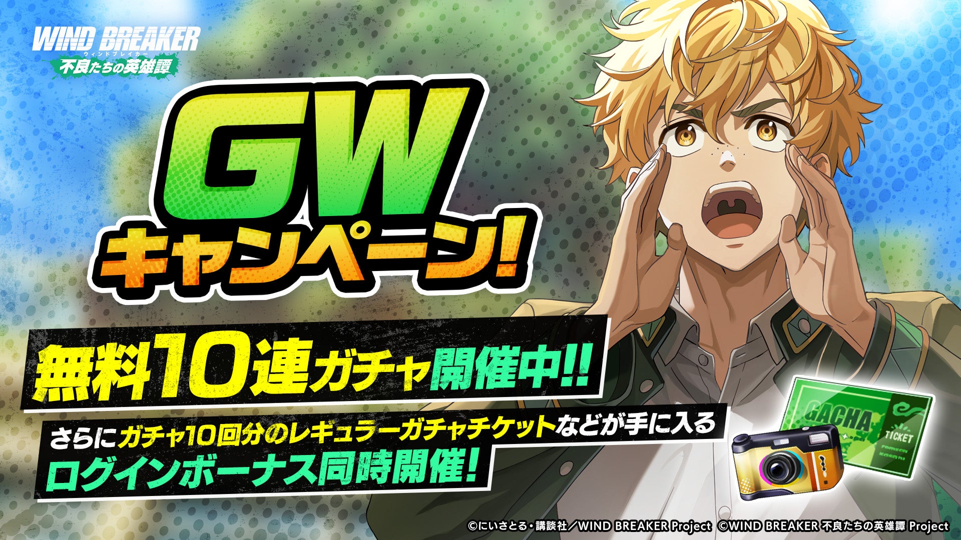 『WIND BREAKER 不良たちの英雄譚』無料10連ガチャやレギュラーガチャチケットがもらえる! 豪華ゴールデンウィークキャンペーン開催!