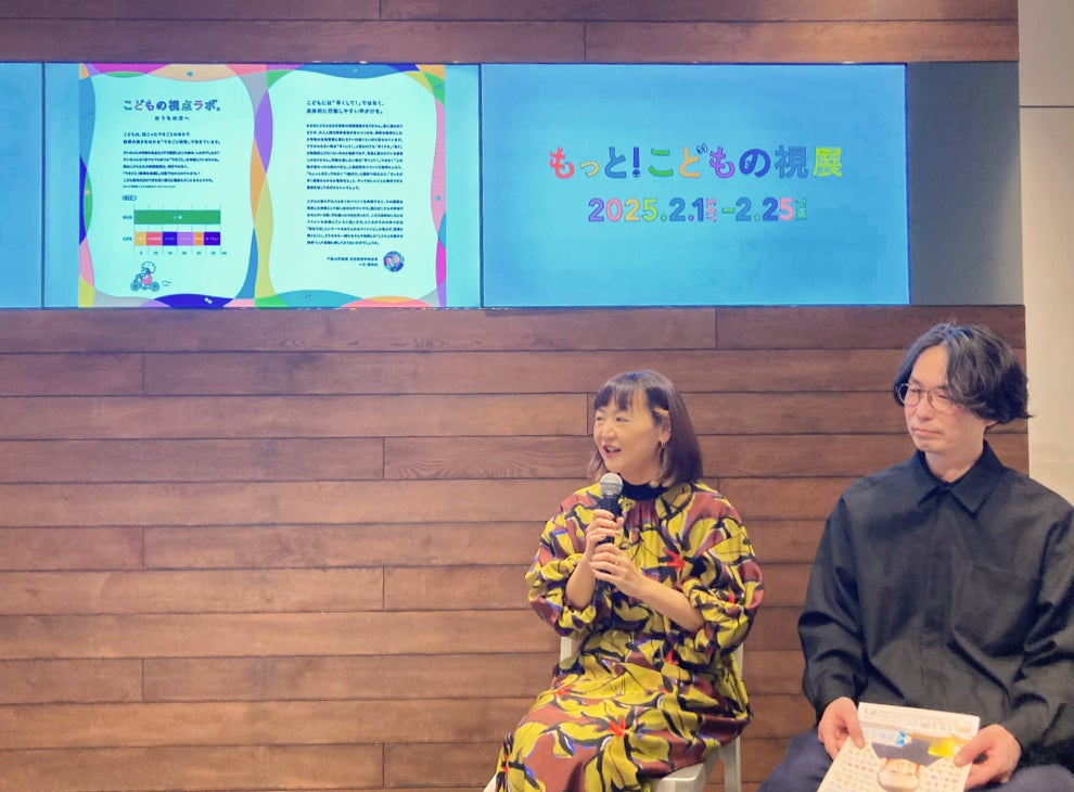 発表会では、まず、今回のイベントを主催した「こどもの視点ラボ」の活動について紹介。ラボのコンセプトムービーを見た後、メンバーである、クリエーティブ・ディレクター/コピーライターの石田文子さん、クリエーティブ・ディレクター/アートディレクターの沓掛光宏さんより説明がありました。