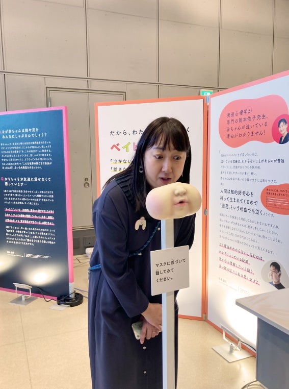 初めて研究が形になった作品が、赤ちゃんの頭がいかに重いかを体験できる「ベイビーヘッド」。その後もさまざまなテーマで発表を重ね、今回のイベントでは12の研究について体験ができます。