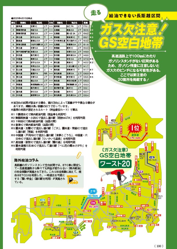 慣れない土地を移動する時に不安なのがガス欠。混雑時に立ち往生してしまえば、路側帯で長時間待つハメになるかも!? そうならないためにも、GS(ガソリンスタンド)空白地MAPであらかじめ旅程を確認しましょう!
