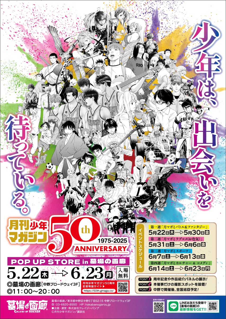 創刊記念月となる今月、サブカルチャー好きの聖地、中野ブロードウェイの「墓場の画廊」にて「月刊少年マガジン50周年記念POP UP STORE」を開催いたします。