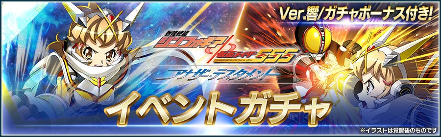 『戦姫絶唱シンフォギア×仮面ライダー555 アナザー・テスタメント』限定の新★5シンフォギアカードが登場する「戦姫絶唱シンフォギア×仮面ライダー555 アナザー・テスタメントイベントガチャ Ver.響」を開催いたします。
