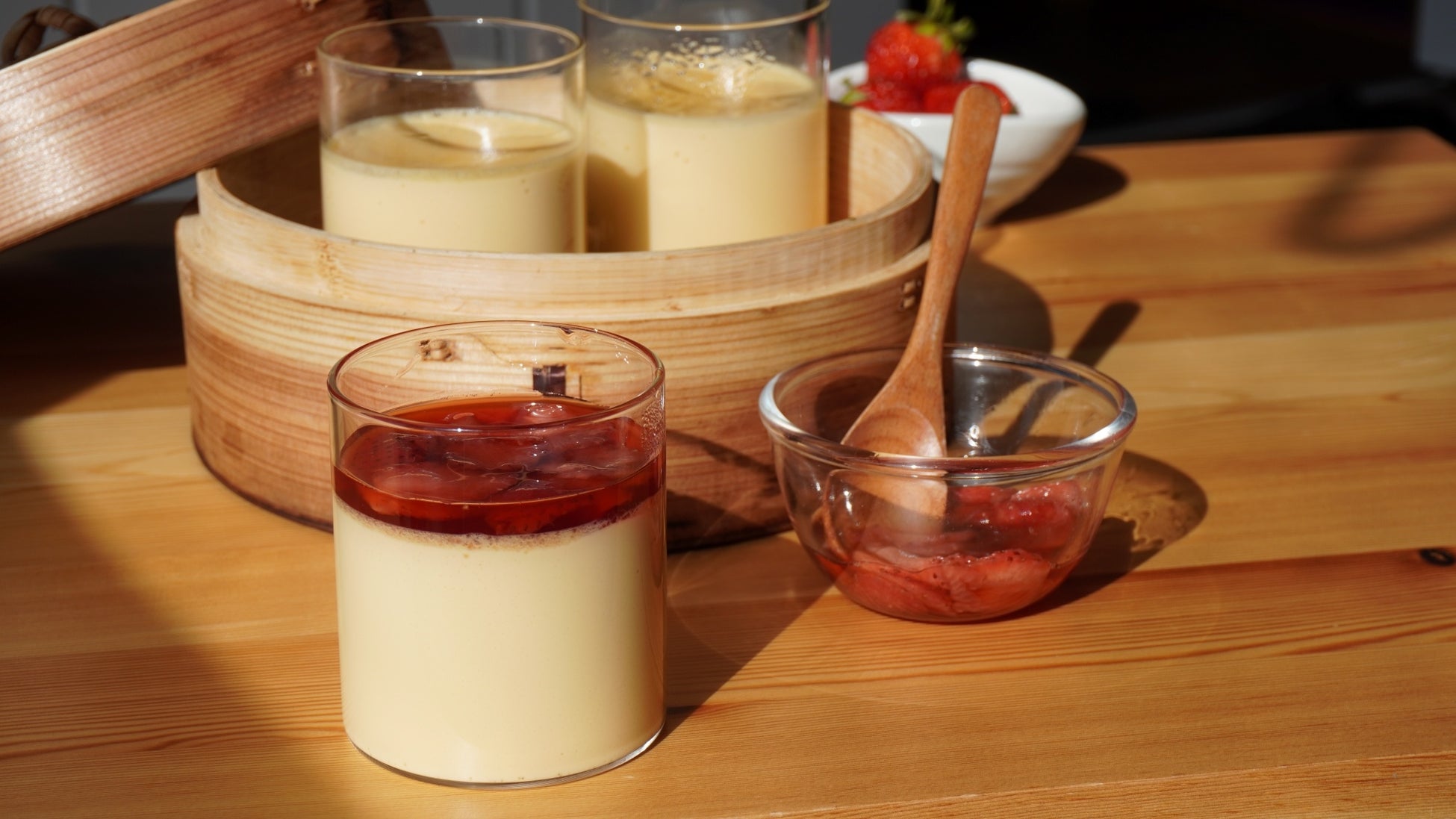 ソースもせいろで同時に作れる! 「蒸しプリン with いちごソース」のレシピカード